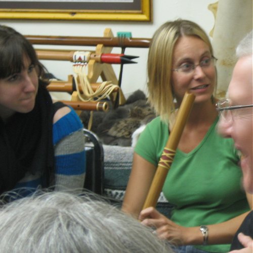 ![]() Angela learning more about the Anasazi flute Vance creates. |